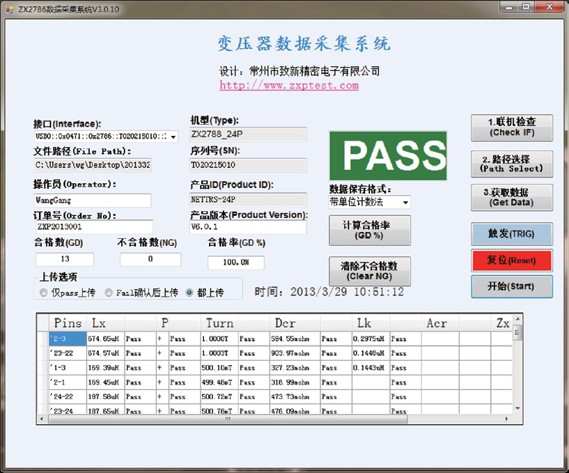 針對客戶需要對變壓器測試儀掃描結果進行統計分析及測試過 程監控的需求,我們為客戶開發了”變壓器數據采集系統”,界面如右圖所示: